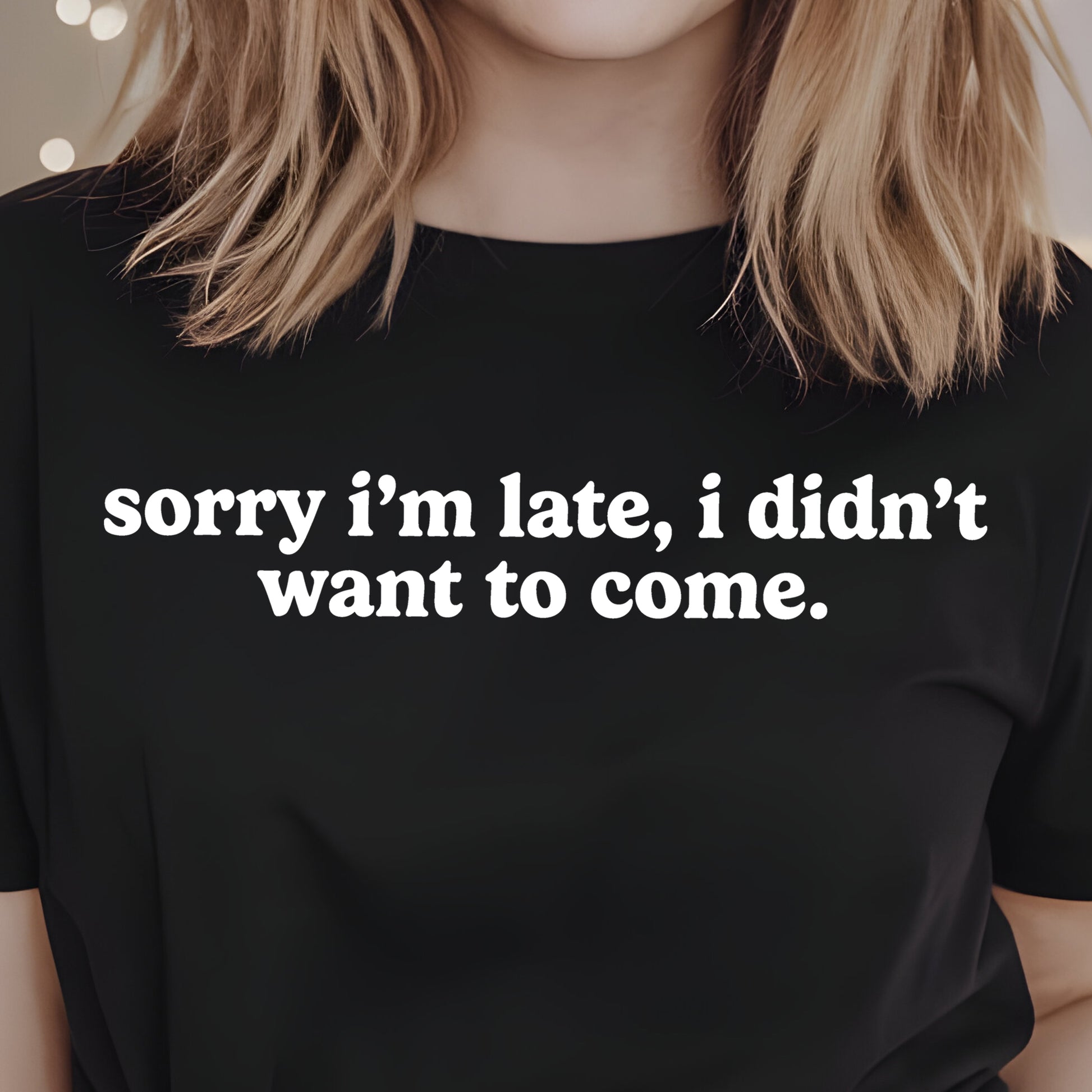 Sorry I'm Late, I Didn't Want to Come- Single Color (white)- 11.5” wide Single Color Transfer