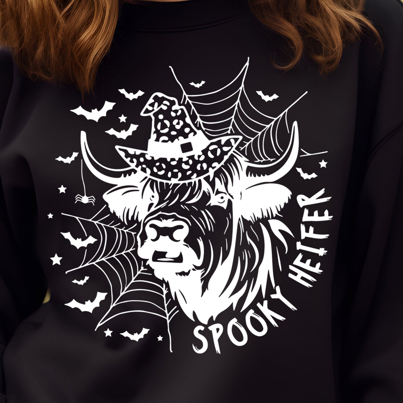 Spooky Heifer- Single Color (white)- 11.5" wide Plastisol Screen Print Transfer
