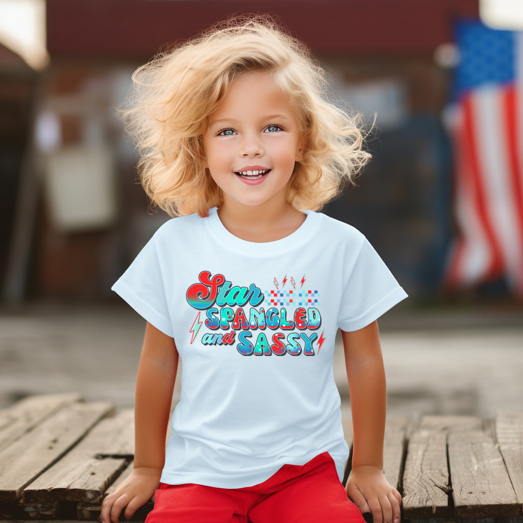 Star Spangled and Sassy (Toddler) *full color matte clear film*- 7" wide Plastisol Screen Print Transfer