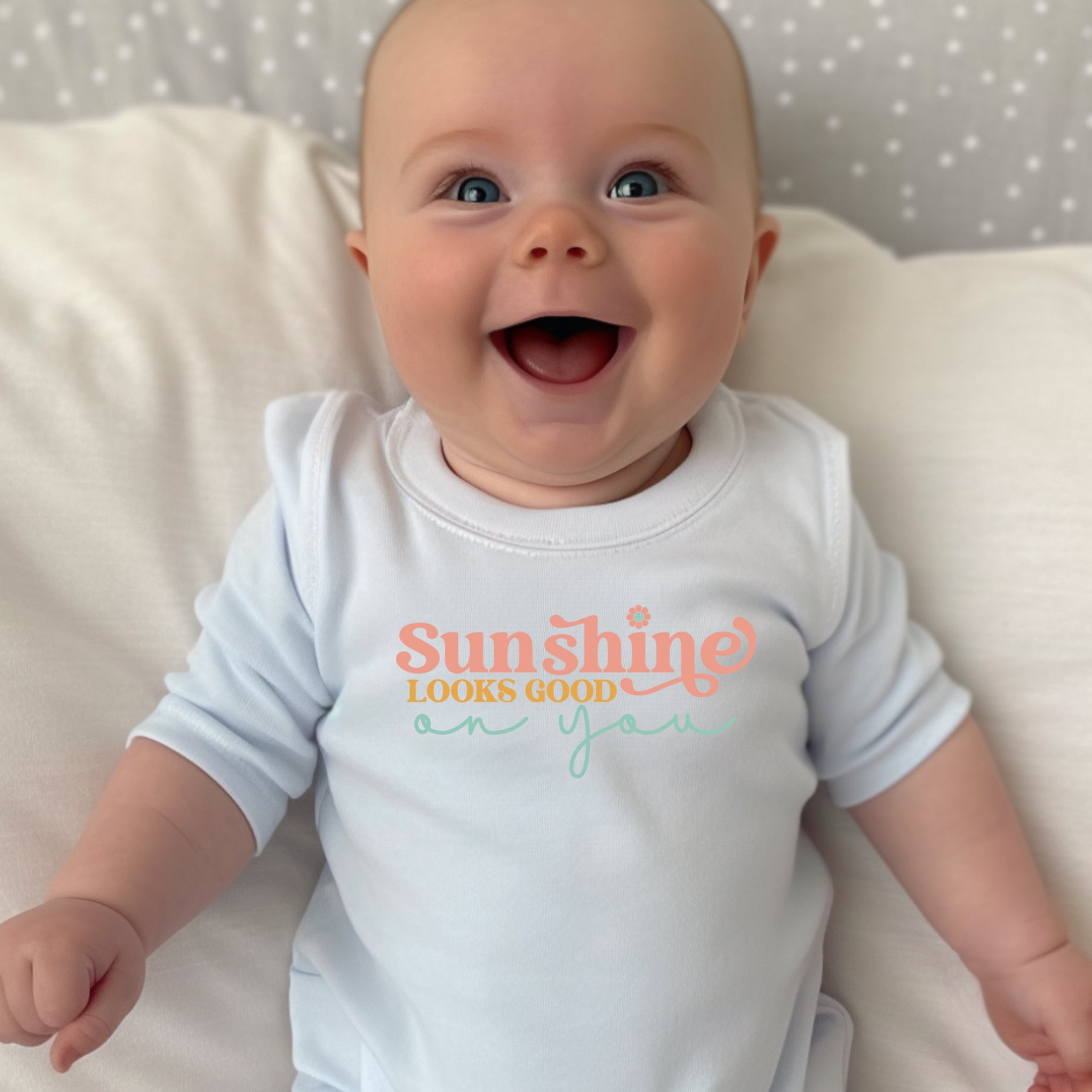 Sunshine Looks Good on You (infant) *full color matte clear film*- 4.5" wide Plastisol Screen Print Transfer