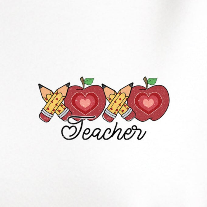 Teacher XOXO (Pocket/Koozie)- *full color matte clear film*- 3" wide Plastisol Screen Print Transfer