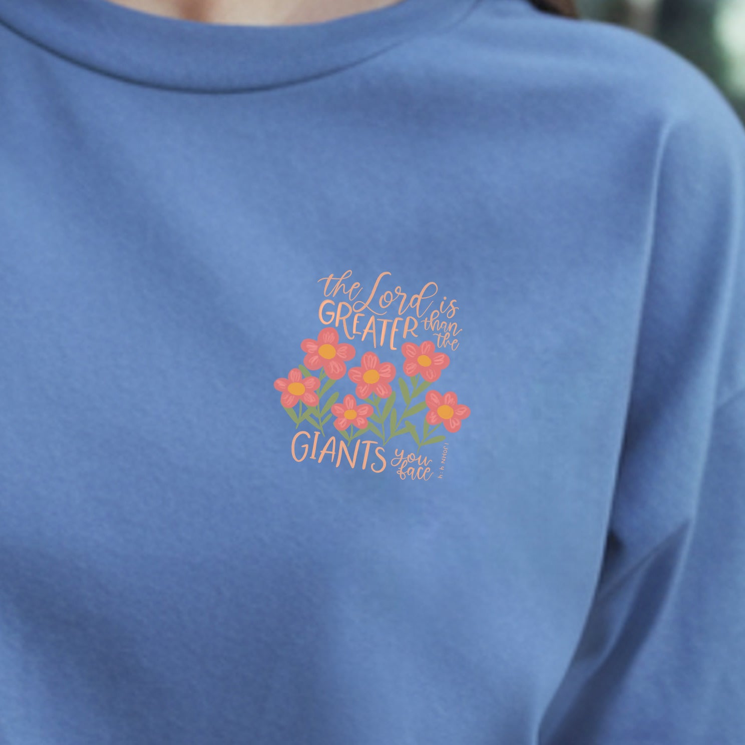 The Lord is Greater Than the Giants You Face (pocket/hat)- 3.2" wide DTF Transfer