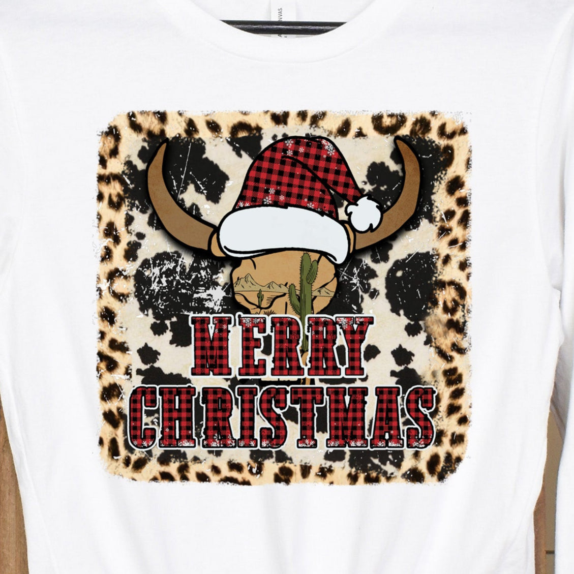 Western Merry Christmas *full color matte clear film*- 11.5" wide Plastisol Screen Print Transfer