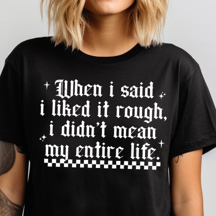 When I Said I Liked it Rough I Didn’t Mean My Entire Life- Single Color (white)- 11.5" wide Plastisol Screen Print Transfer