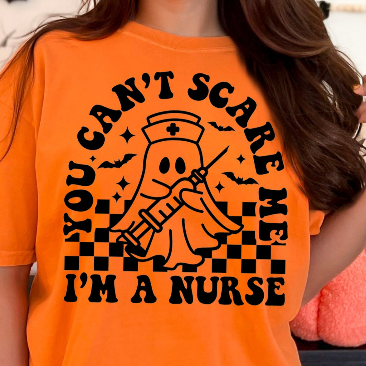 You Can't Scare Me, I'm a Nurse- Single Color (black)- 11.5" wide Plastisol Screen Print Transfer