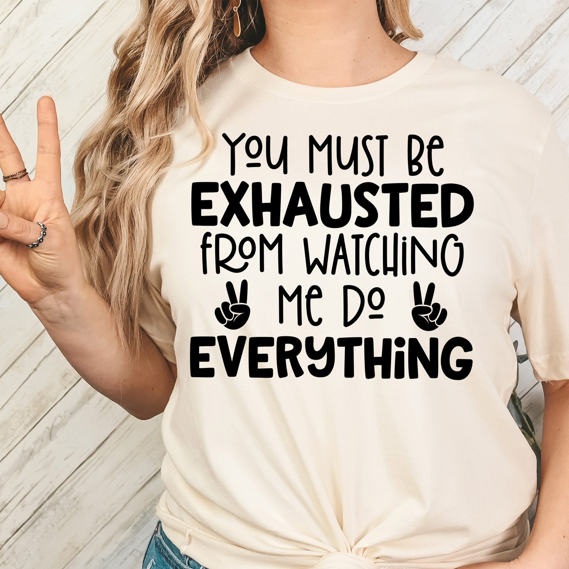 You Must Be Exhausted From Watching Me Do Everything- Single Color (black)- 11.5" wide Plastisol Screen Print Transfer