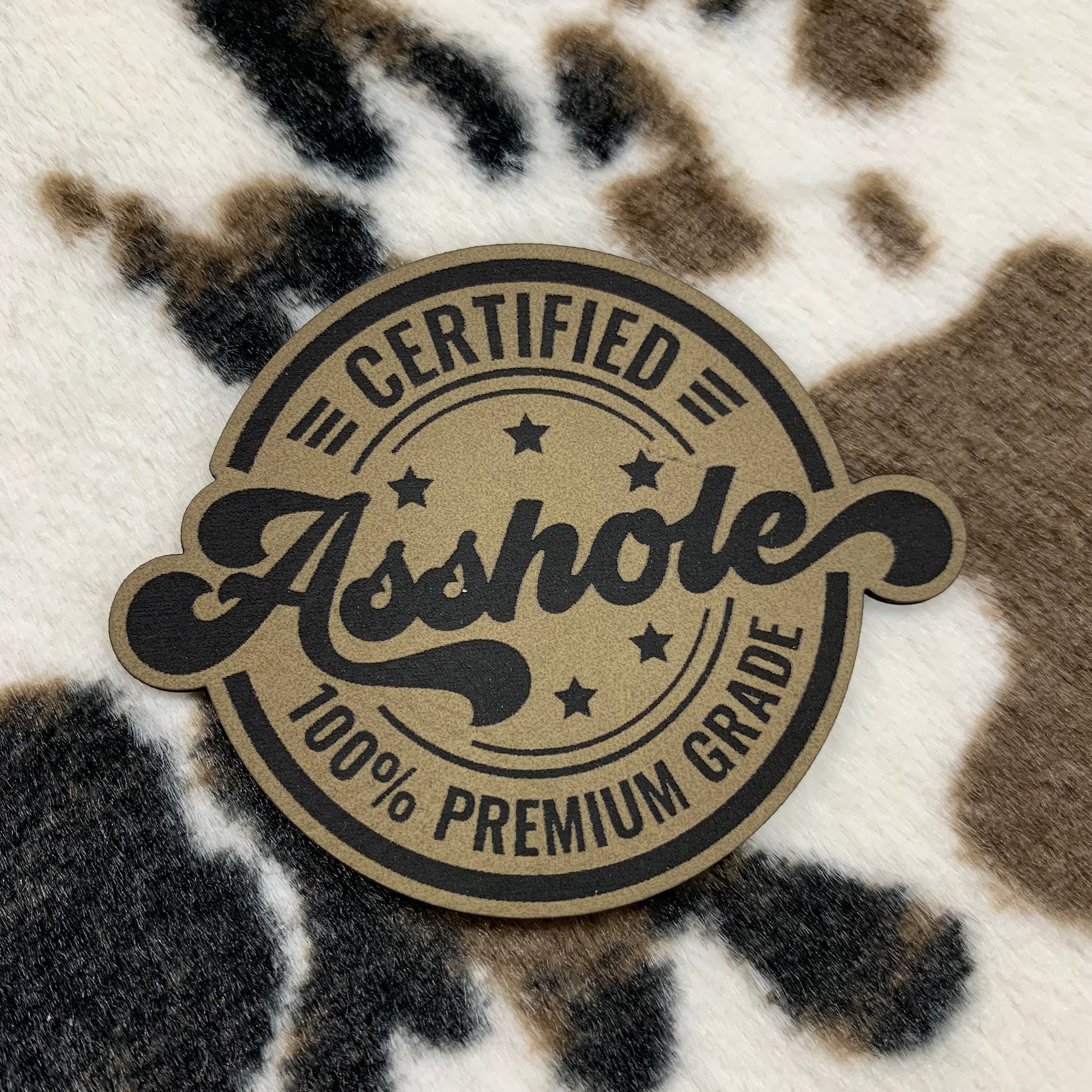 Certified A$$hole 100% Premium Grade- 2.9" wide x 2.25" tall Leatherette Patch